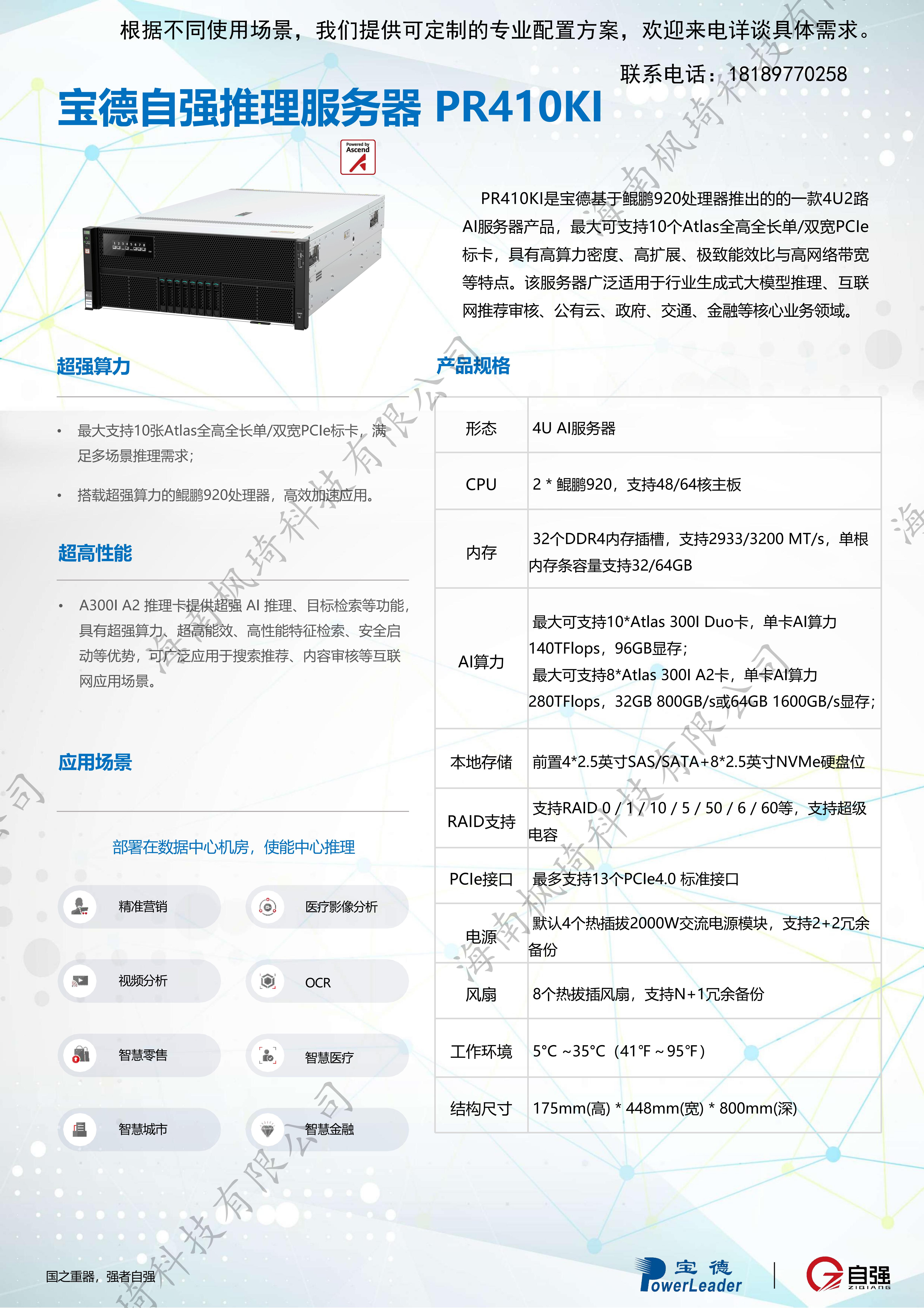宝德 PR410KI-300I A2 塔式服务器 巨/大/中型机